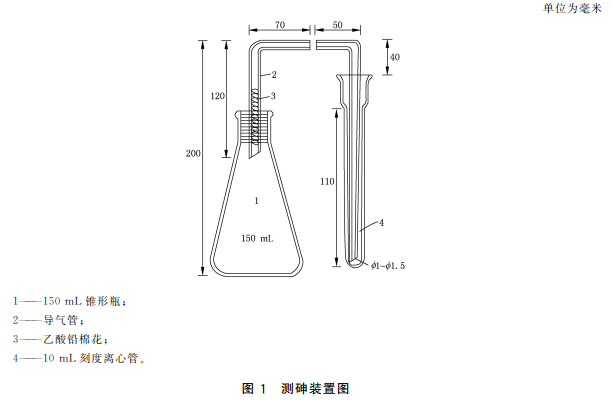 3.4.1砷標(biāo)準(zhǔn)儲(chǔ)備液(100mg/L,按As計(jì)):準(zhǔn)確稱(chēng)取于100℃干燥2h的三氧化二砷0.0132g,加1mL氫氧化鈉溶液(100g/L)和少量水溶解,轉(zhuǎn)入100mL容量瓶中,加入適量鹽酸調(diào)整其酸度近中性用水稀釋至刻度。4℃避光保存,保存期一年。或購(gòu)買(mǎi)經(jīng)國(guó)家認(rèn)證并授予標(biāo)準(zhǔn)物質(zhì)證書(shū)的標(biāo)準(zhǔn)溶液物質(zhì)。