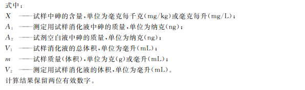 相同條件下,將試劑空白、樣品溶液分別引入儀器進(jìn)行測(cè)定。根據(jù)回歸方程計(jì)算出樣品中砷元素的濃度。