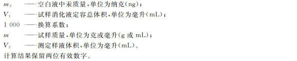 稱取固體試樣0.2g~1.0g(精確到0.001g),新鮮樣品0.5g~2.0g或液體試樣吸取1mL~5mL稱量(精確到0.001g),置于消解內(nèi)罐中,加入5mL硝酸浸泡過夜。蓋好內(nèi)蓋,旋緊不銹鋼外套,放入恒溫干燥箱,140℃~160℃保持4h~5h,在箱內(nèi)自然冷卻至室溫,然后緩慢旋松不銹鋼外套,將消解內(nèi)罐取出,用少量水沖洗內(nèi)蓋,放在控溫電熱板上或超聲水浴箱中,于80℃或超聲脫氣2min~5min趕去棕色氣體。取岀消解內(nèi)罐,將消化液轉(zhuǎn)移至25mL容量瓶中,用少量水分3次洗滌內(nèi)罐,洗滌液合并于容量瓶中并定容至刻度,混勻備用;同時(shí)作空白試驗(yàn)。