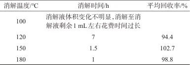 表1 不同溫度時(shí)的消解時(shí)間和回收率(n=3)